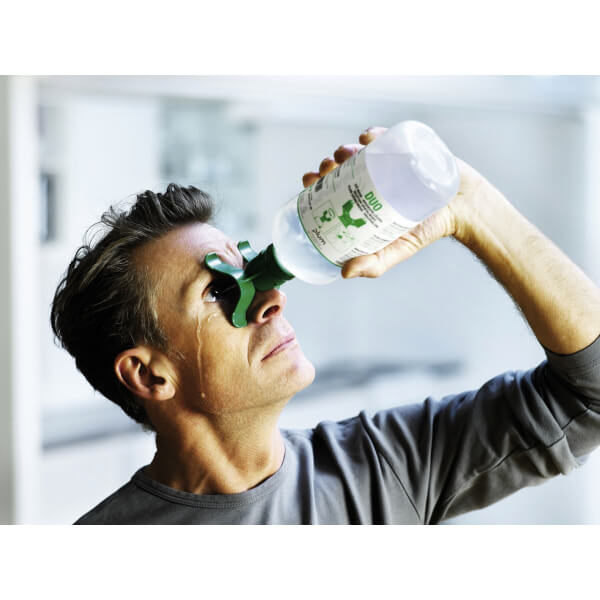 - Die 500 ml und 1000 ml Flasche ist für den Einzeleinsatz am Arbeitsplatz und für die Nachfüllung der Augenspül- und Notfallstation vorgesehen.