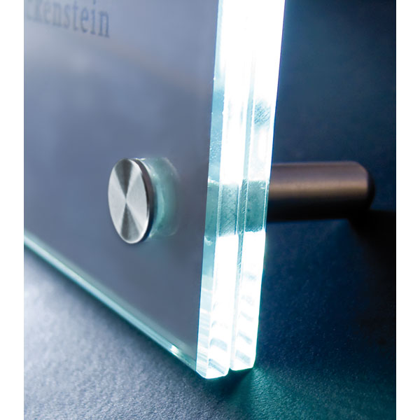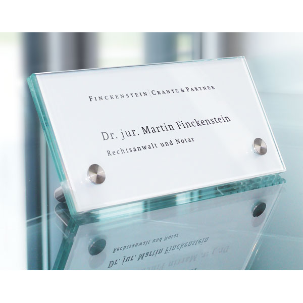 - besteht aus 2 Glasscheiben à 4 mm je nach Wunsch können die Schilder mit Folieneinlagen, Folientext oder im Digitaldruck beschriftet werden (nicht beiliegend, bitte extra bestellen)
