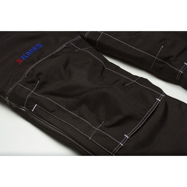 - doppelte Oberschenkeltasche links mit wasserdichtem Reißverschluss und Patte
