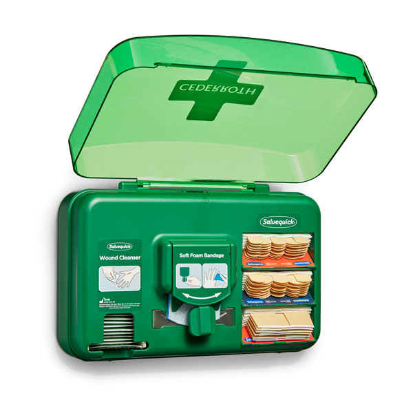 Der praktische Erste Hilfe Spender ist ideal für die Wundversorgung kleinerer Wunden und ist eine optimale Ergänzung zum Erste Hilfe Koffer oder Erste Hilfe Station. Viel genutze Verbandsmaterialien können einfach aus dem Wound Care Dispenser entnommen und einfach wieder aufgefüllt werden.