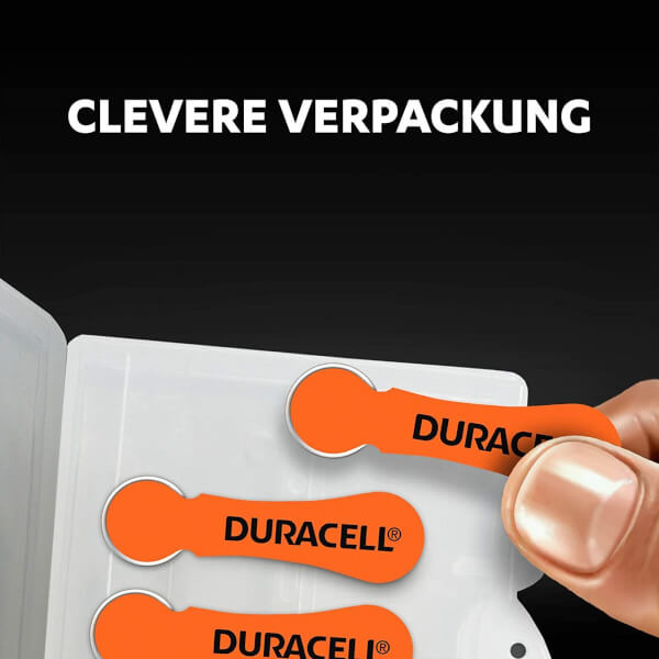 Hören Sie jeden Moment dank der lang anhaltenden Power von Duracell Spezialzellen Hörgerätebatterien mit EasyTab® Laschen. Eine EasyTab® Lasche ist extra lang und macht die Handhabung und den Austausch einfach, die leichtgewichtige Verpackung lässt sich einfach öffnen.