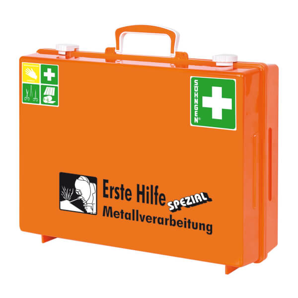 Im Zuge der Arbeitssicherheit muss in jedem Betrieb ein ordnungsgemäßer Erste-Hilfe-Koffer zu finden sein, welcher auf eine allgemeine und generelle Sicherheit ausgelegt ist. Doch für jede Berufsgruppe gibt es zuweilen eigene Risiken und Gefahren. So orientiert sich dieser Erste-Hilfe-Koffer speziell an Metallverarbeitungsbetrieben, sodass die dort auftretenden Unfälle noch spezifischer behandelt werden können. Der gesamte Koffer setzt sich nach DIN 13157 zusammen und beinhaltet darüber hinaus weitere, berufsgruppenbezogene Materialien, die zur effektiven Ersten Hilfe beitragen.