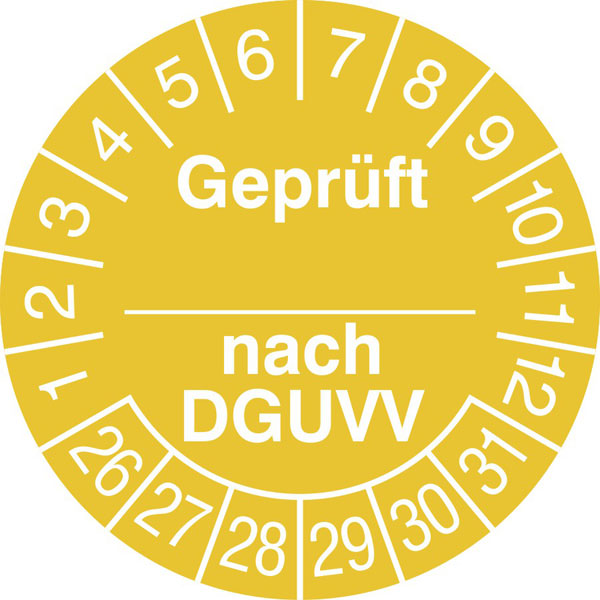 - Neue Prüfplakette gemäß der Vorschrift der DGUV