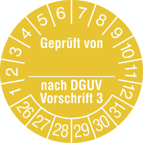 Einsatz Prüfplakette "Geprüft von _ nach DGUV Vorschrift 3"