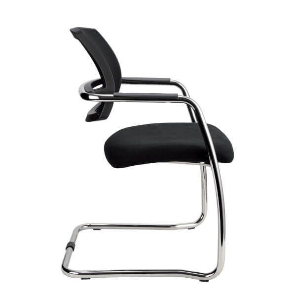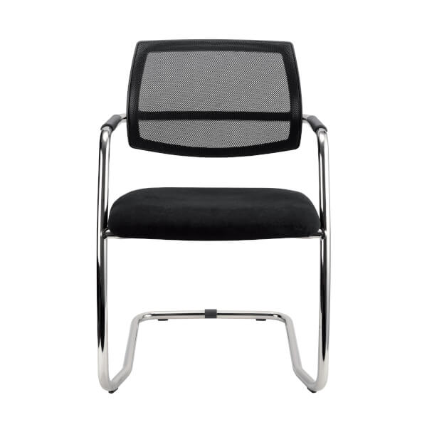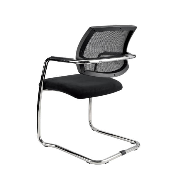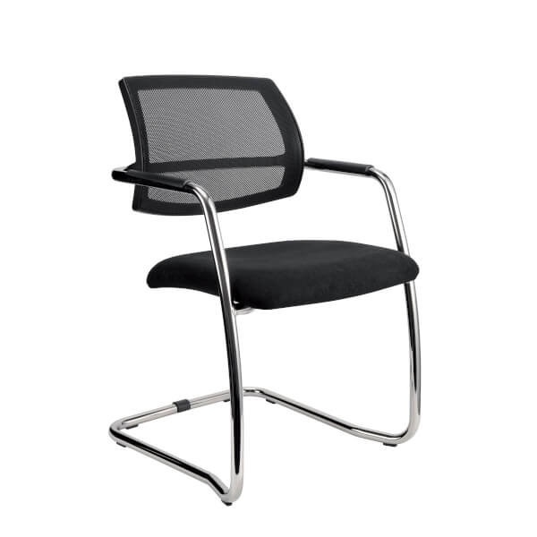 Freischwinger mit integrierten Armlehnen und Netzrücken.