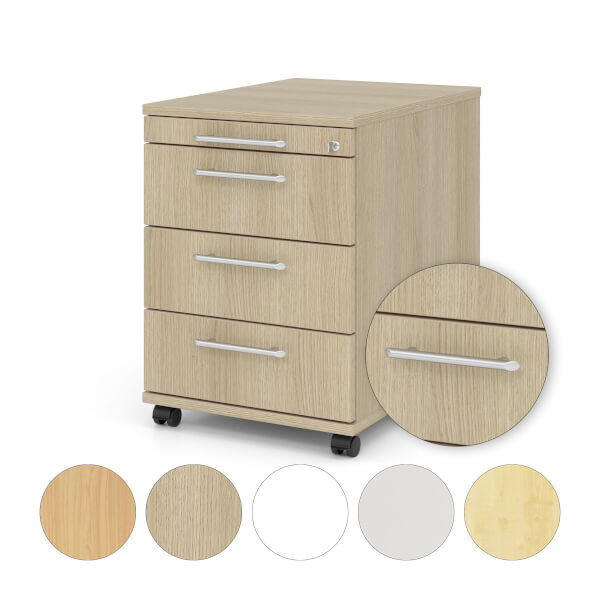 Rollcontainer mit wahlweise 3 (Hängeregister) oder 4 Schubladen.