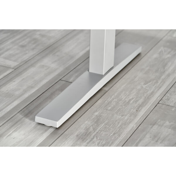 Elektrisch höhenverstellbarer Schreibtisch mit C-Fuß und Tastschalter.