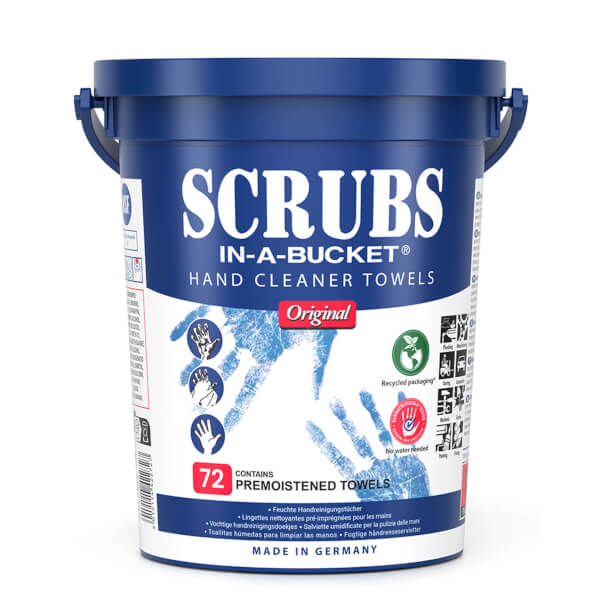 Die SCRUBS® Reinigungstücher eignen sich für den universellen Einsatz und entfernen härteste Verschmutzungen wie Farbe, Öl, Klebstoffe, und weitere an Werkzeug, Oberflächen, Händen ganz ohne Wasser.
