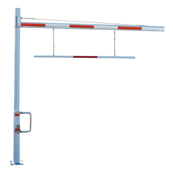 Die drehbare Höhenbegrenzung dient der höhenbegrenzten Absperrung von Zufahrten oder Wegen.