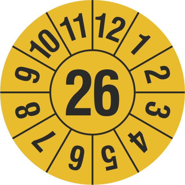 Prüfplakette Jahresplakette mit 2-stelliger Jahreszahl signalgelb/schwarz