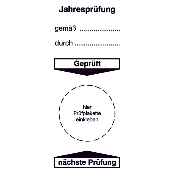 Grundplakette - Jahresprüfung gemäß ... durch ...