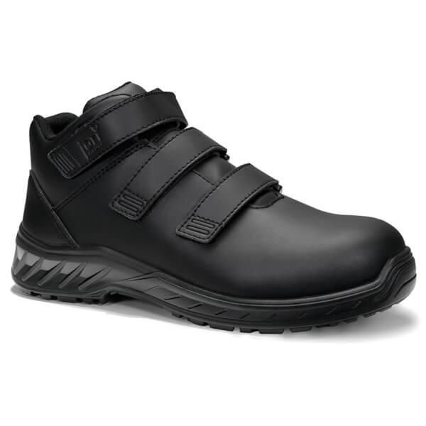 Schlichter Sicherheitsstiefel mit Klettverschluss und Kunststoffkappe.