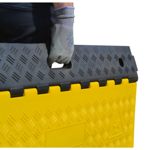 Die heavy Kabelbrücke von wolk® dient dem sicheren Überfahren von Schläuchen und Kabeln.