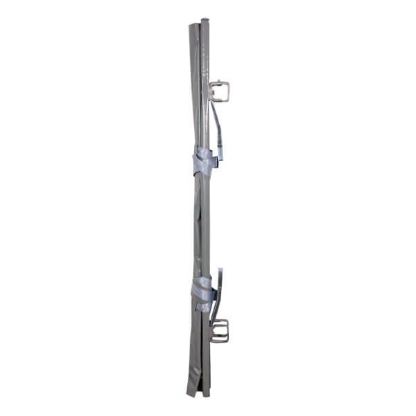 Nahtlose Aluminium-Vierkantprofile, hochbelastbar, verriegelbare Stahlgelenke, Tragegriffe einschiebbar. Patienten-Sicherungsgurte mit Schnellverschlüssen. Mit 4 Gleitfüßen. Tragenbezug: beschichtetes Chemiefasergewebe, mit Kopfkissentasche.