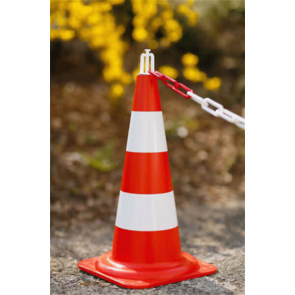 Macht im handumdrehen aus einem normalen Leitkegel ein flexibles Kettenabsperrsystem.