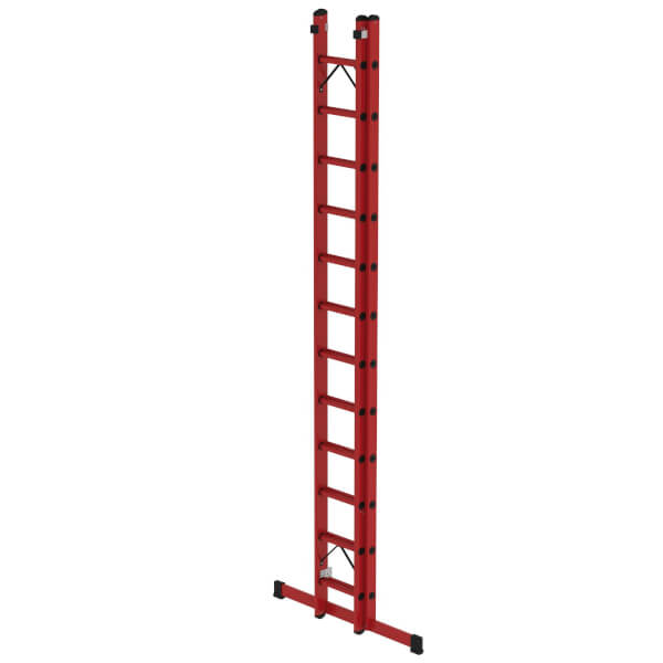 Die zweiteilige Sprossen-Schiebeleiter von Munk aus GFK eignet sich ideal für das sichere Arbeiten in der Nähe von oder an unter Spannung stehenden Teilen.