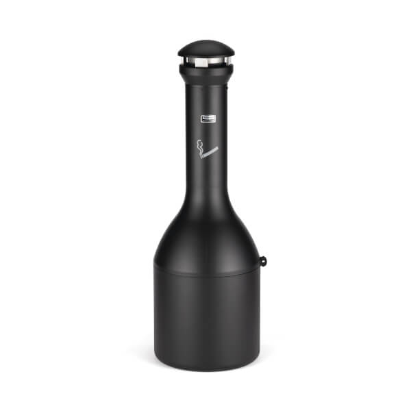 Der Rubbermaid® Infinity Standaschenbecher profitiert durch sein formschönes Design und bewahrt bis zu 5000 Zigarettenstummel sicher auf.