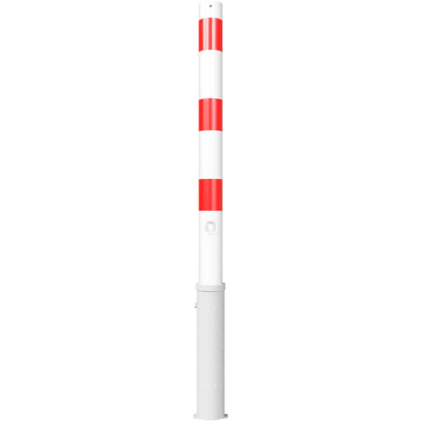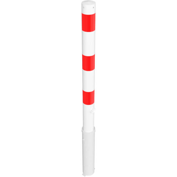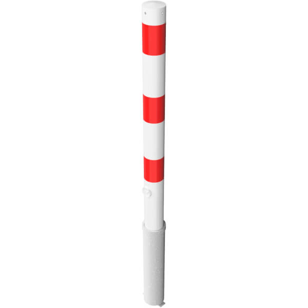 Herausnehmbarer Absperrpfosten mit Bodenhülse.