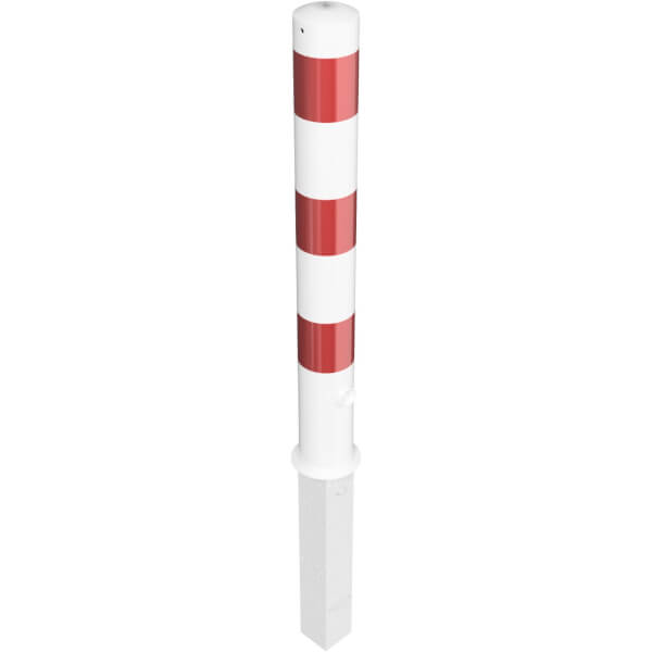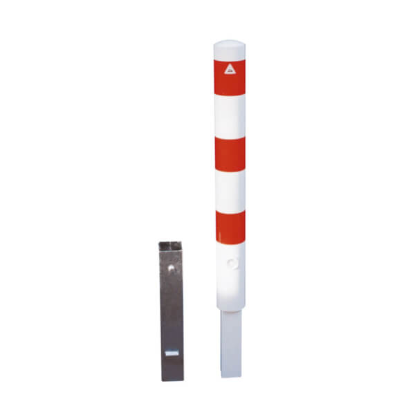 Herausnehmbarer Absperrpfosten mit Bodenhülse.