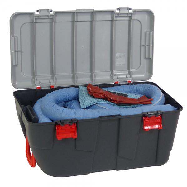 Die Schoeller Bindemittel aus Polypropylen im praktischem Notfallkoffer profitieren durch ihre enormen Saug- und Bindeeigenschaften und eignen sich daher ideal für Leckagen und Verschüttungen von Ölen, Chemikalien, Gefahrenstoffen.