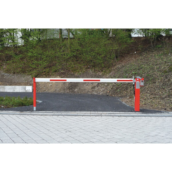 Die hochwertige Schranke dient der temporären Absperrung von Zufahrten oder Wegen und ist wahlweise mit Auflage- oder Pendelstütze erhältlich.