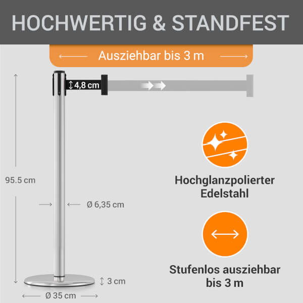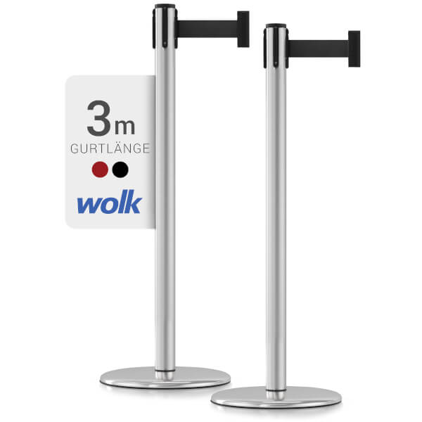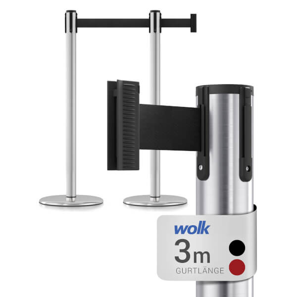 Der zeitlos designte wolk® Edelstahl-Absperrpfosten eignet sich ideal für das zuverlässige Absperren und Leiten von Menschenmengen oder abgesperrten Bereichen.