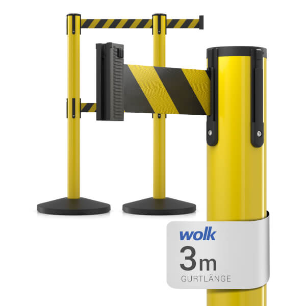 Der hochwertige wolk® Kunststoff-Absperrpfosten eignet sich ideal für das zuverlässige Absperren und Leiten von Menschenmengen oder abgesperrten Bereichen. Ideal für den Außenbereich und rund um Baustellen.