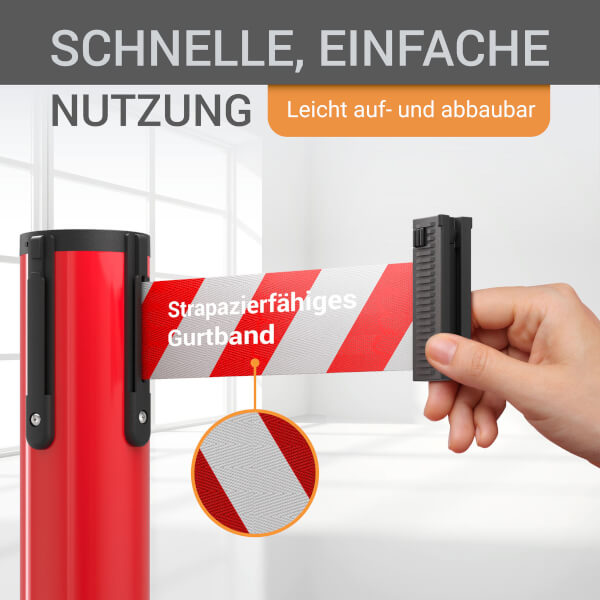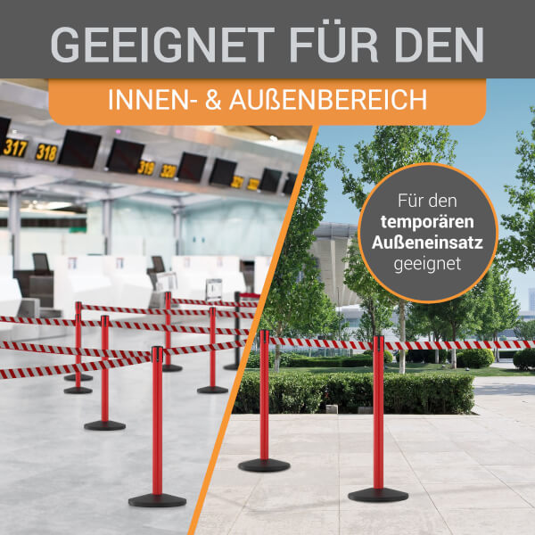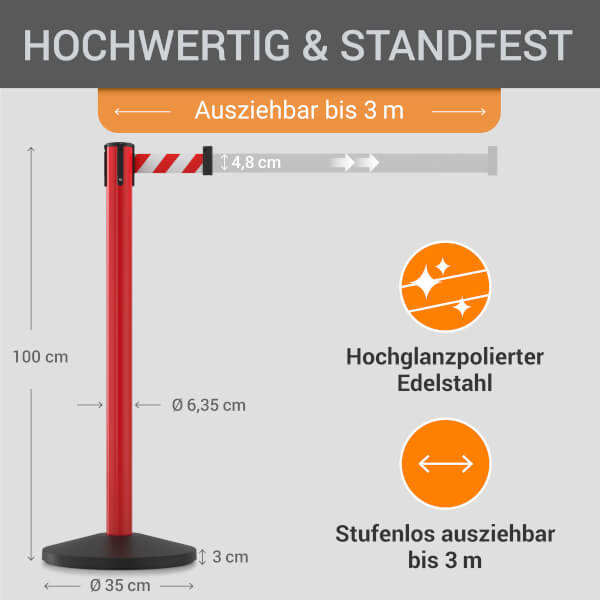 Der hochwertige wolk® Stahl-Absperrpfosten eignet sich ideal für das zuverlässige Absperren und Leiten von Menschenmengen oder abgesperrten Bereichen.
