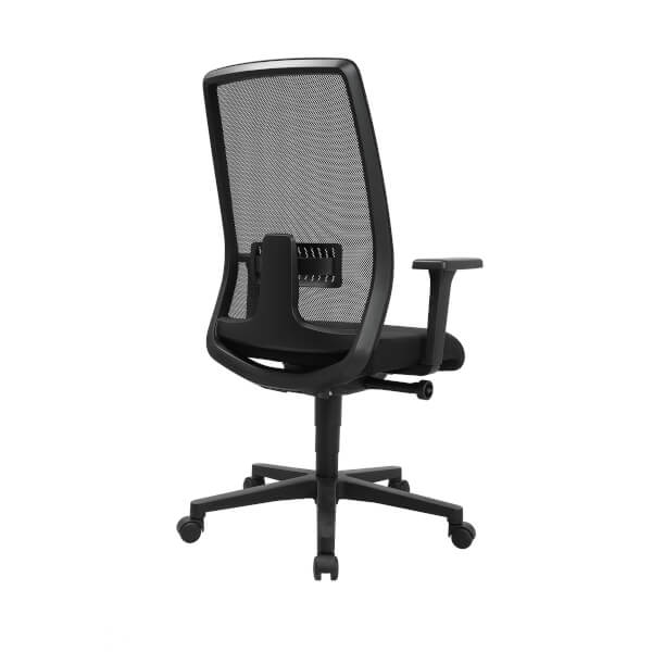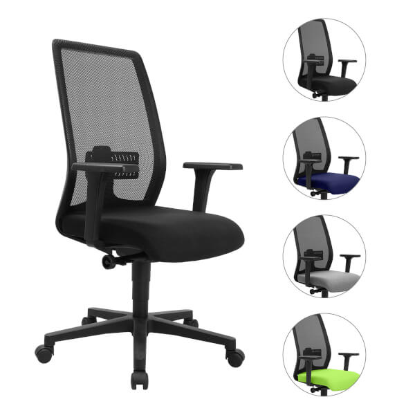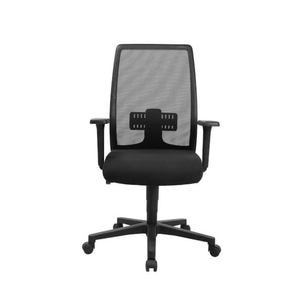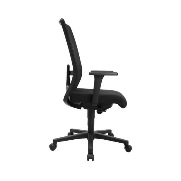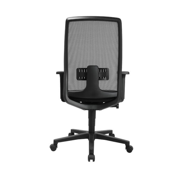Bürostuhl mit höhenverstellbaren Armlehnen und kompletter Netzrückenlehne.