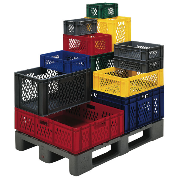 Die Transport-Stapelkästen sind aus robustem Polypropylen und entsprechen den Bestimmungen des Lebensmittelgesetzes.
