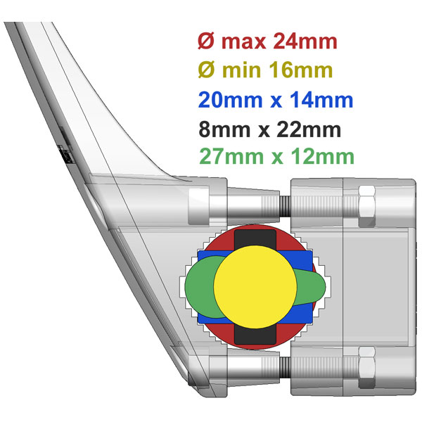 Der Handfrei-Türöffner ist zur Befestigung an runden, ovalen sowie eckigen Türklinken mit einem Durchmesser von 16-24 mm geeignet. Mit der Rasteraufnahme und vier Schrauben ist er einfach und sicher zu montieren.