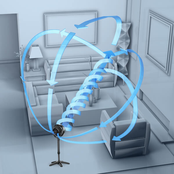 Die Modellreihe 633 ist ideal geeignet für mittel bis sehr große Räume. Die Luft wird bis zu einer Entfernung von 23 Metern zirkuliert.
