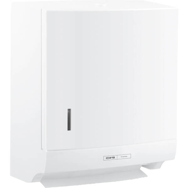 Einwandfreie Hygiene ist in vielen Branchen und Arbeitsbereichen von außerordentlicher Bedeutung, beispielsweise in der Lebensmittelindustrie oder der Pharmazie. Aber auch in Waschräumen ist hygienische Sauberkeit von hoher Wichtigkeit. Dabei ist es ganz gleich, ob es sich um eine öffentliche Toilette, oder um das Gäste-WC in ihrem Unternehmen handelt: Hygiene und Ausstattung werden im Gedächtnis Ihrer Gäste bleiben – ebenso wie Ihr gesamtes Unternehmen. Deshalb ist es sinnvoll, sich bei der Auswahl der Produkte bewusst für Qualität, wie dem führenden Hersteller CWS, zu entscheiden. Durch leichtes Herausziehen wird das Papierhandtuch aus dem Spender entnommen. Der CWS Faltpapierspender ist für Papierhandtücher in Lagen- oder in Zick-Zack-Falzung geeignet. Durch einen Sichtschlitz an der Frontseite kann der Füllstand der Handtücher jederzeit kontrolliert werden.