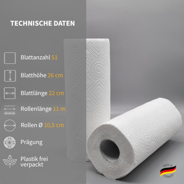 - plastikfreie Verpackung – die Küchenrolle wird direkt im hygienischen Karton geliefert