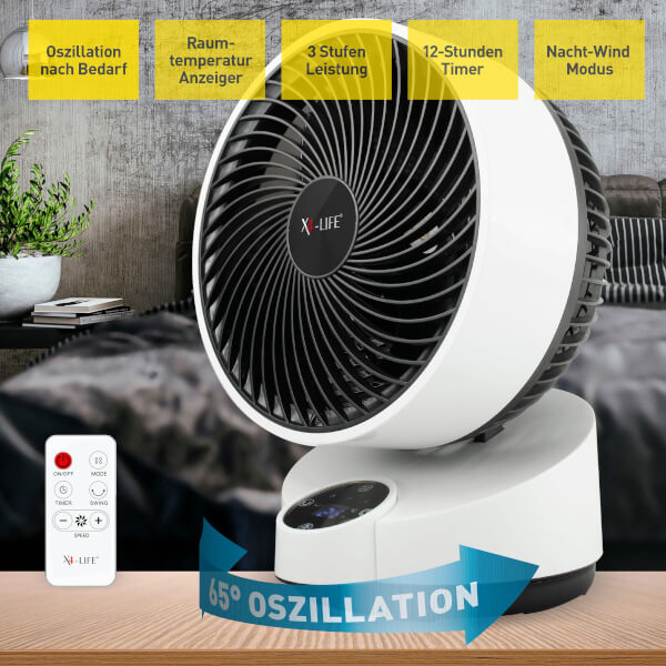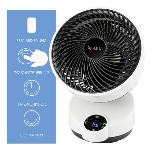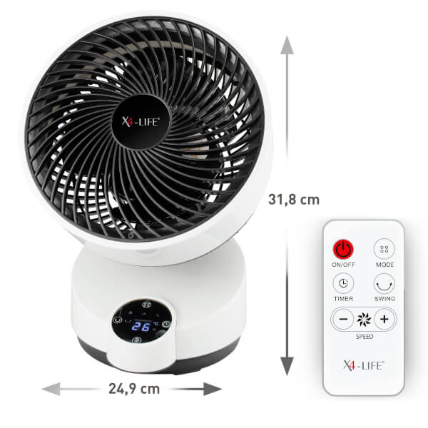 Der X4-Life Bodenventilator ist sehr leise und sparsam im Betrieb. Die Luft wird bis zu einer Entfernung von 5 Metern zirkuliert.